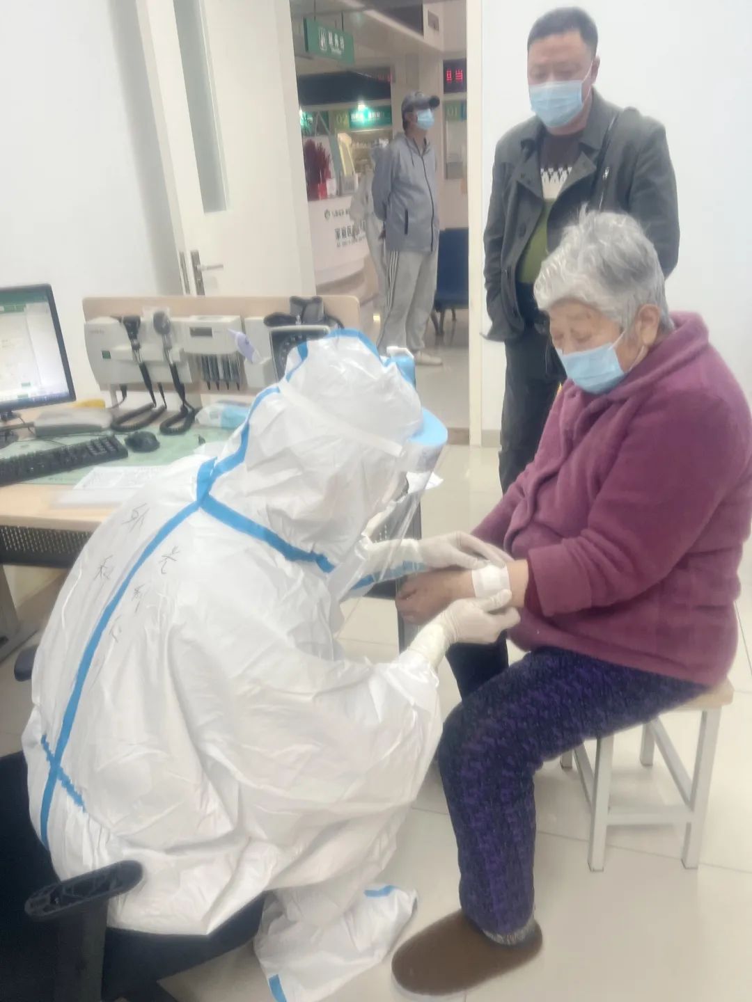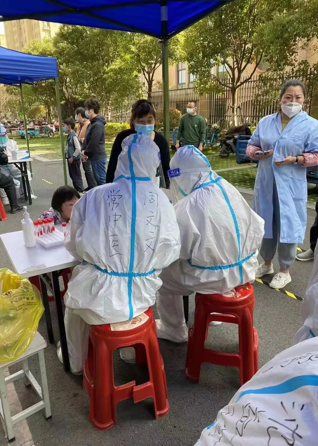 推拿科蔡硙、肾病科洪祎在小区里参与核酸采样
